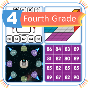 Fourth Grade Math Activities Resources and Games First Grade Counting Patterns Shapes Fun Second Grade Numbers Adding Subtracting Shapes Fun Third Grade Operations Multiplication Geometry Fun Fourth Grade Multiplication Geometry Fractions Fun Fifth Grade Integers Decimals Fractions Geometry Fun Sixth Grade Operations Geometry Measures Decimals Percents Fun Number Counting Base Ten Hundreds Fun Geometry Shapes Solids Fun Fractions Comparing Operations Fun Multiplication Times Tables Facts Factors Multiples Fun Fun Fun Problems Fun Games Fun Math Measurement Clocks Money Rulers Operations Addition Subtraction Division Mixed Fun Probability Statistics Charts Spinners Fun